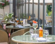 Stravování je hostům hotelu poskytováno v hotelové restauraci – snídaně formou bufetu, obědy formou servírovaného menu a večeře formou bufetu (popř. servírované menu). Vstup do hotelové restaurace není povolen v županu a ve sportovním oblečení. Možnost dietní a vegetariánské stravy (nutno nahlásit předem). V hotelu dále bar, společenský sál, zimní zahrada a venkovní atrium s fontánou a tančírnou.
