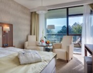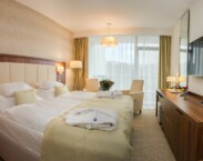 Premium plus: nově zrekonstruovaný pokoj větších rozměrů, koupelna, TV/SAT, klimatizace, minibar, telefon, trezor, fén, župan, balkon