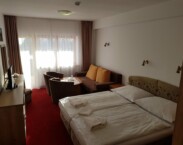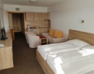 Dvoulůžkový pokoj: koupelna a WC, SAT/TV, balkon, fén, lednice, župany pro dospělé. Možnost 1 – 2 přistýlek (rozkládací gauč).